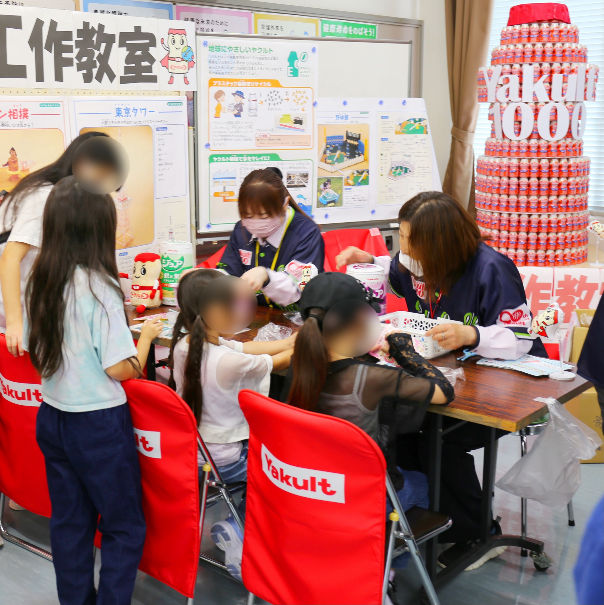 当日は当社のブースに100名以上来場され、ヤクルト工作を一緒に楽しみました。