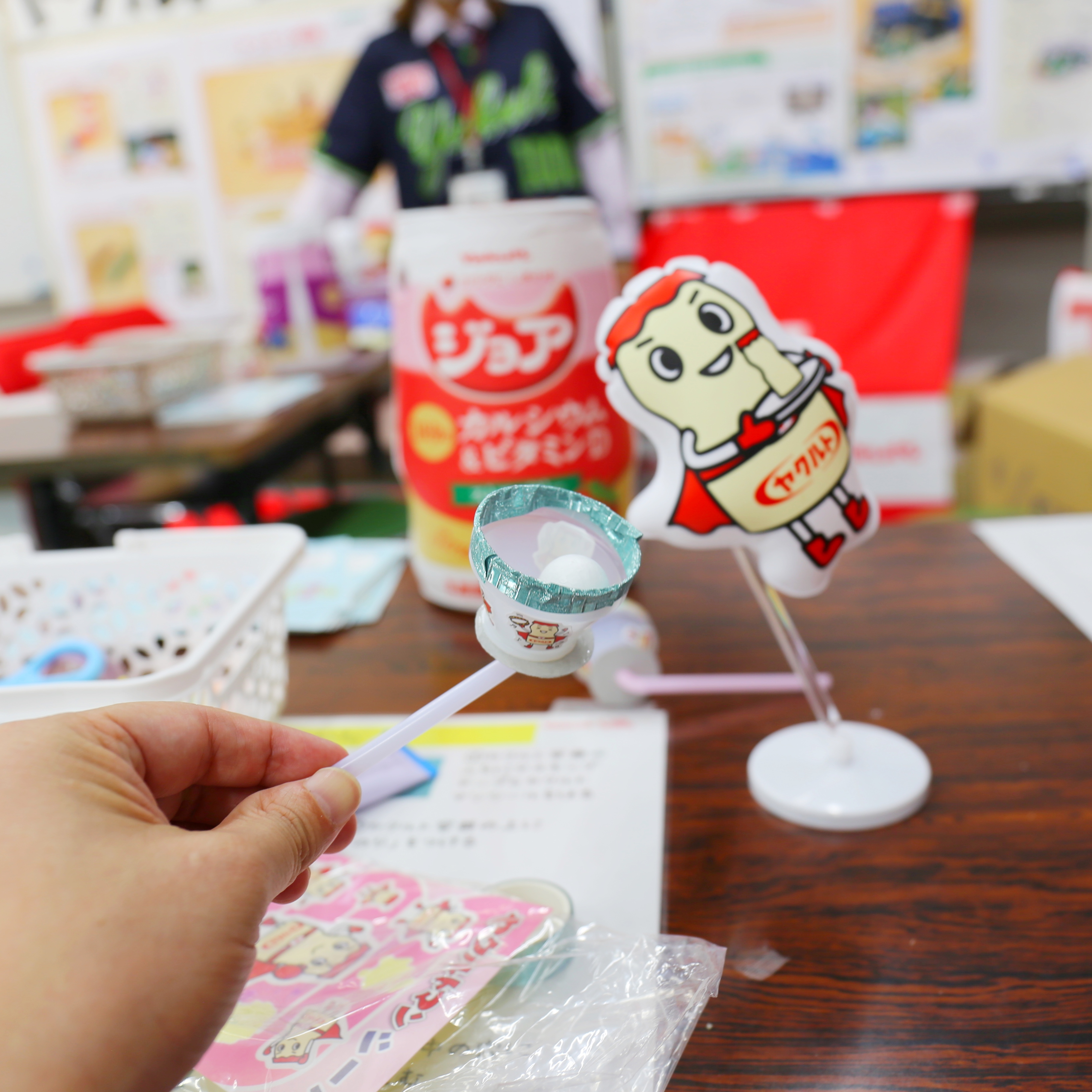 広島中央ヤクルトは「ヤクルトの空容器を使った工作教室」のブースを出展。Yakult1000の空容器を使って"ふき玉"を作る工作教室を行いました。